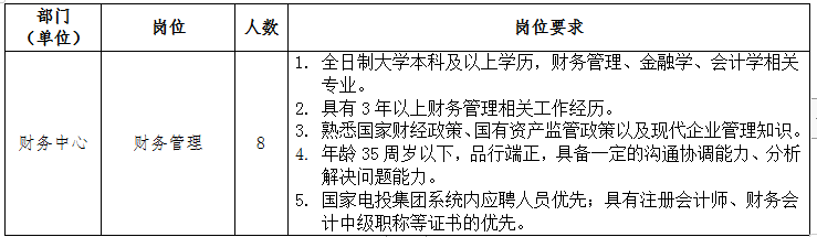 面向國家電投集團系統(tǒng)內、外招聘財務管理崗位人員8人。